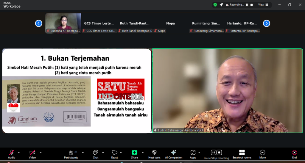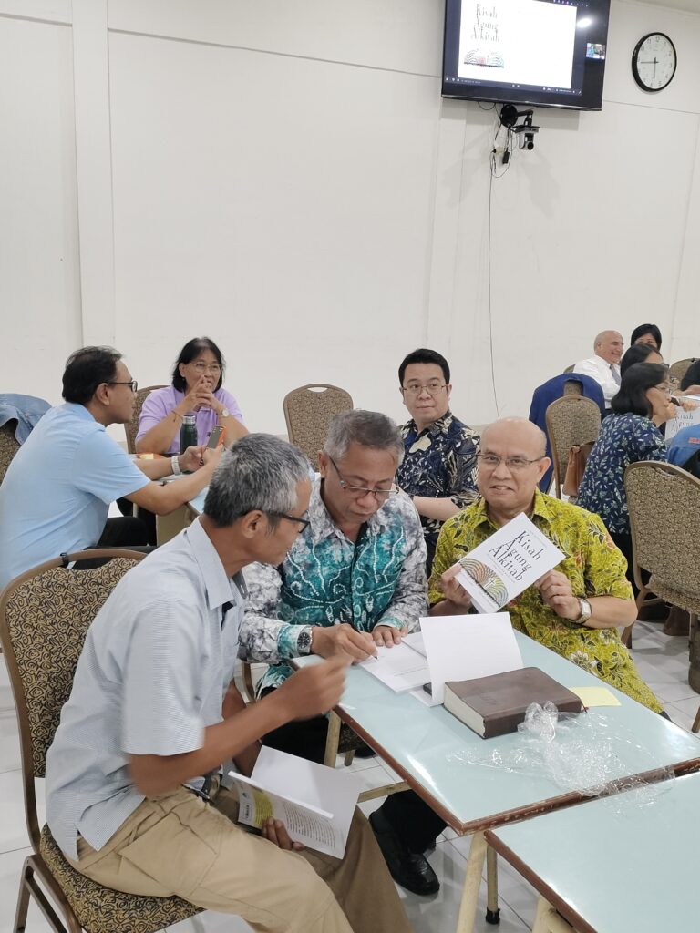 Pembukaan dibawakan oleh Pdt. Jon G sebagai penulis sekaligus menyampaikan Overview dari bukunya. Ulasan buku juga disampaikan dengan sangat baik dan jelas oleh Bapak Budi Setiamarga yang juga hadir secara online. Peserta yang hadir di tempat langsung menerima buku untuk dipakai saat sesi diskusi kelompok untuk menjawab dua pertanyaan yang diberikan. Peserta online dibagi ke dalam beberapa kelompok breakout room.