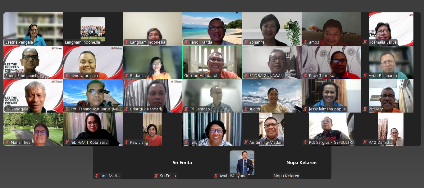 Kegiatan Tindak Lanjut Training For Trainers Tahap PB dilaksanakan pada Rabu 18 Juni 2025 secara online via Zoom. Acara ini merupakan tindak lanjut dari beberapa TFT Tahap PB yang sudah dilakukan dengan Phil Nicholson sebagai pelatih. Acara dimulai pukul 18.00 WIB sesuai dengan jadwal yang sudah ditetapkan dan berlangsung dengan baik dan lancar. 30 orang peserta hadir secara online untuk mengikuti kegiatan ini. Peserta yang hadir yaitu para pelatih yang sudah mengikuti TFT PB dan diharapkan akan terlibat menjadi pelatih Tahap PB 1 dan Tahap PB 2 di wilayah pelayanan masing-masing.
